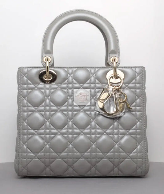 Torebka Lady Dior medium opal grey/light gold NOWA