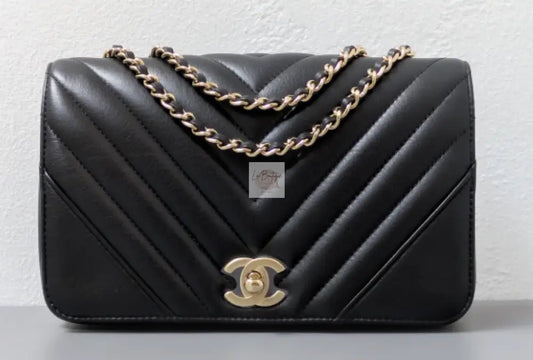 Torebka Chanel Chevron Mini | Black Lambskin Light Gold Hardware 2019 jak nowa