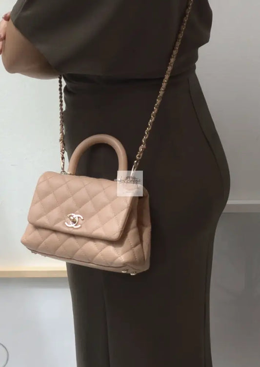 Torebka Chanel Coco Handle mini pink beige/gold hdw caviar
