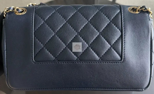 Torebka Chanel Mademoiselle small dark blue gold hdw seria 23