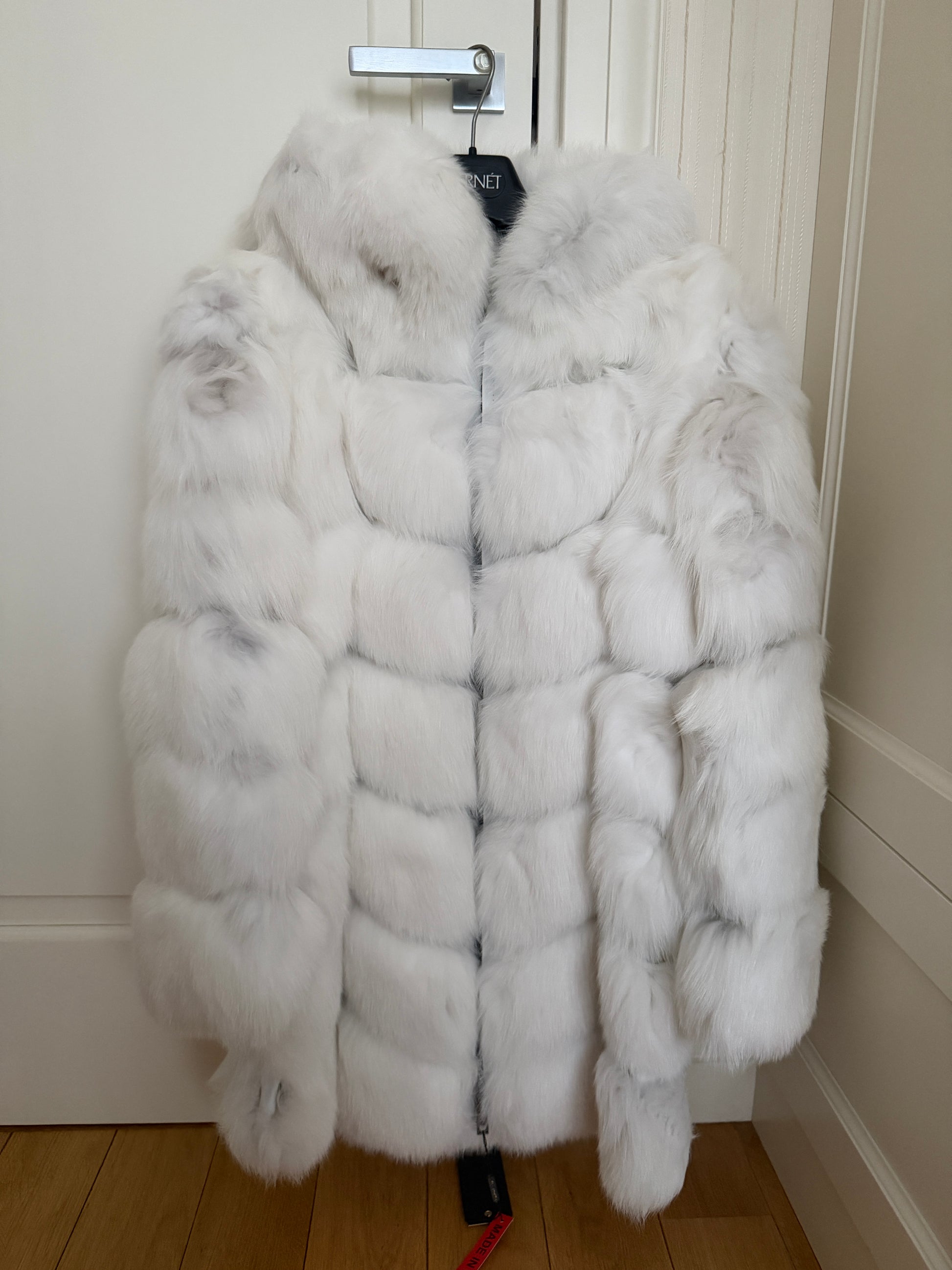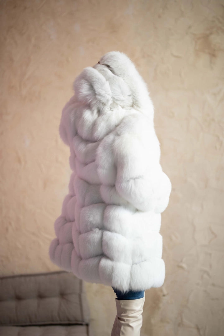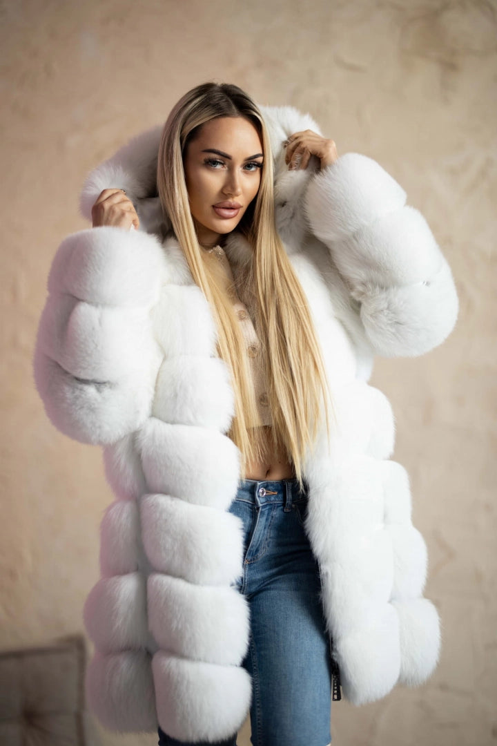 Luksusowe Futro z Lisa Białego 2w1 z Kapturem M/38