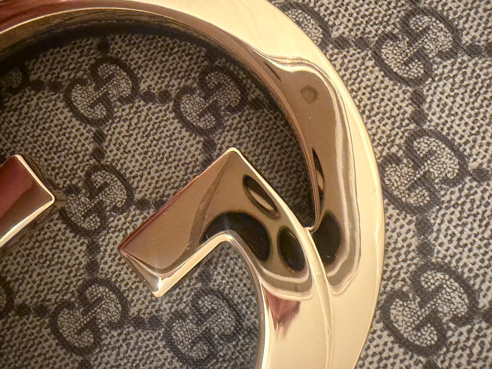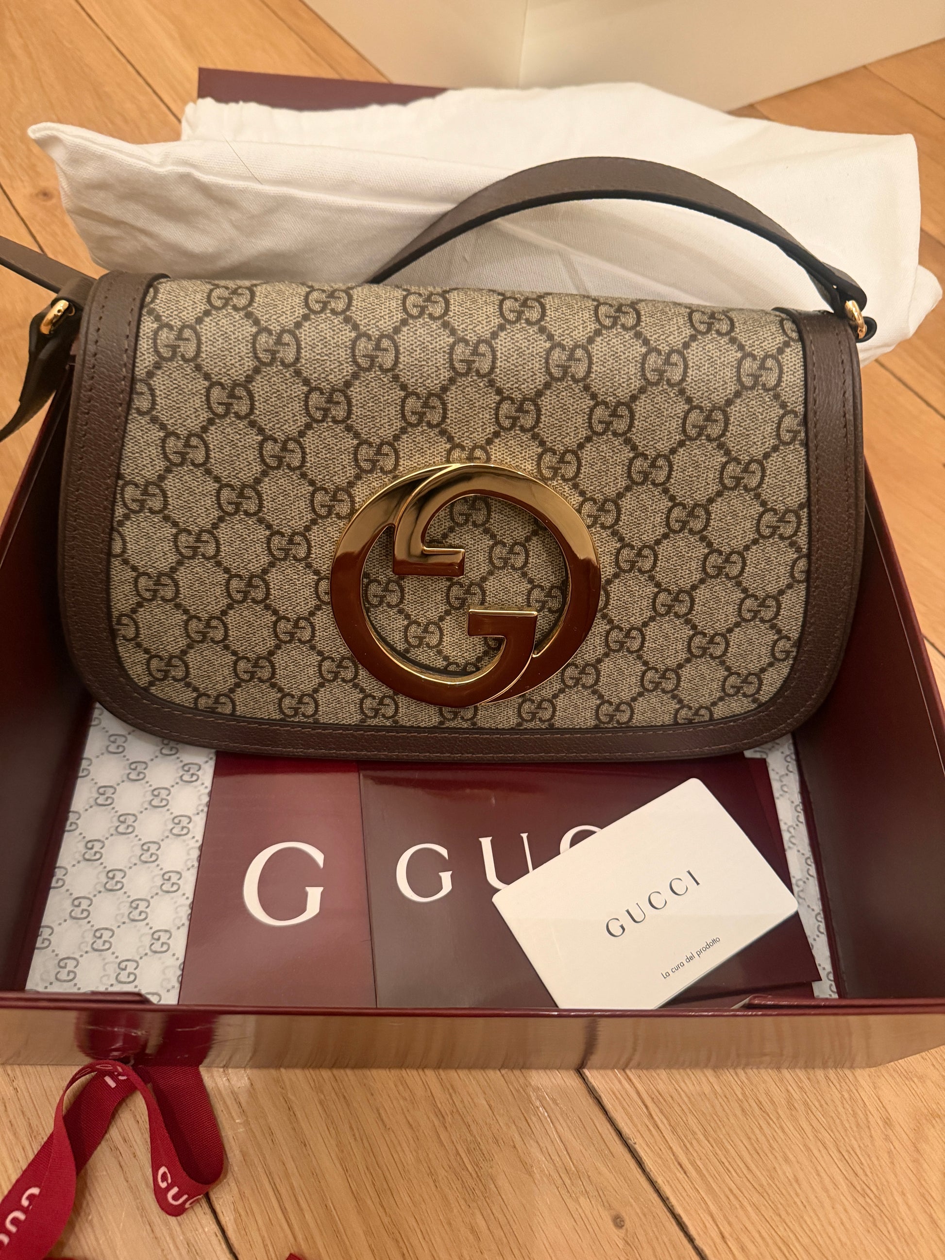 Nowa Gucci Blondie ze złotymi okuciami, nie założona nigdy. Wykonana z materiału w klasyczny wzór Gucci. W środku mała kieszonka.